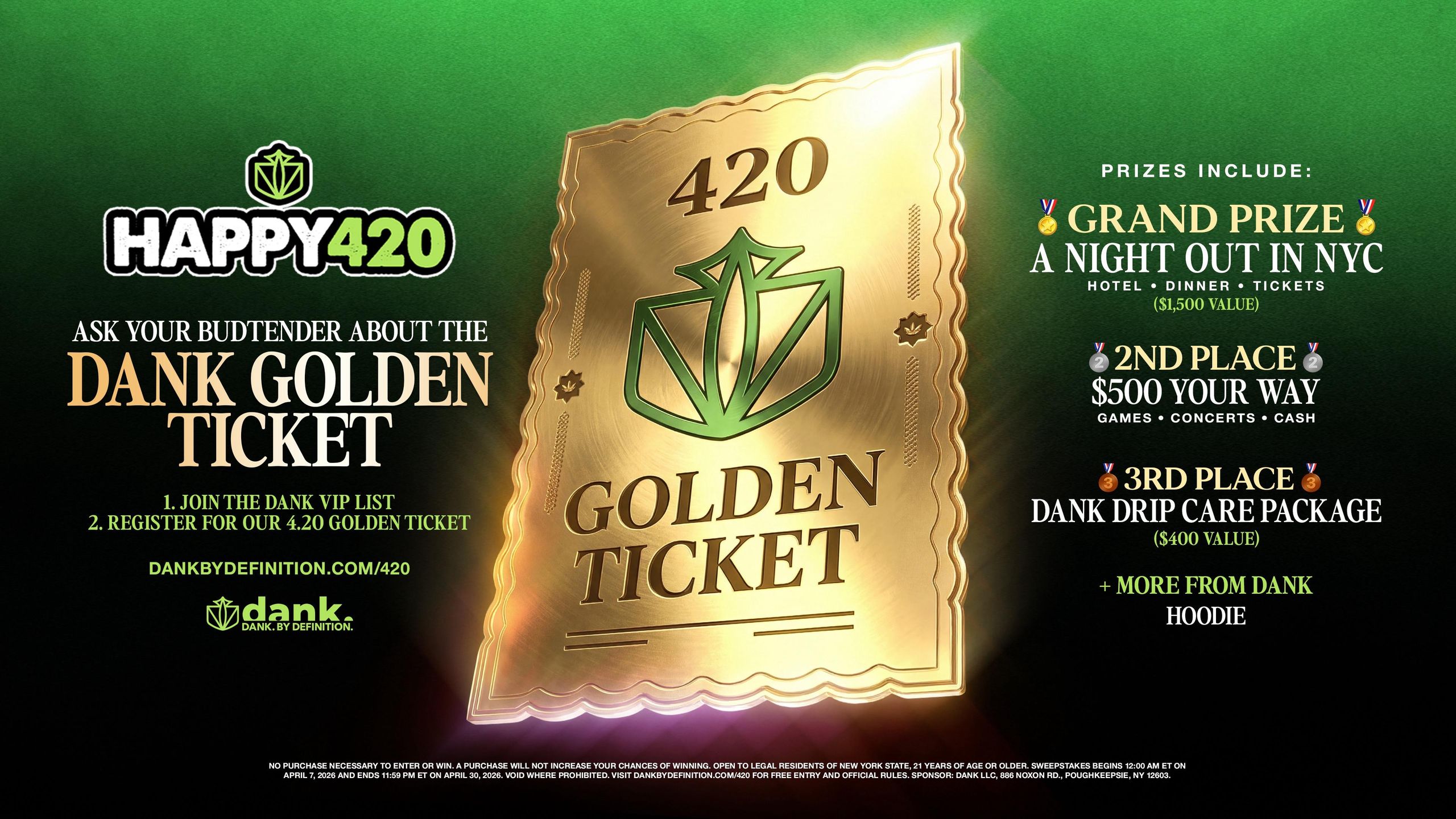 Dank Golden Ticket Pre-Roll with any Dank Eighth