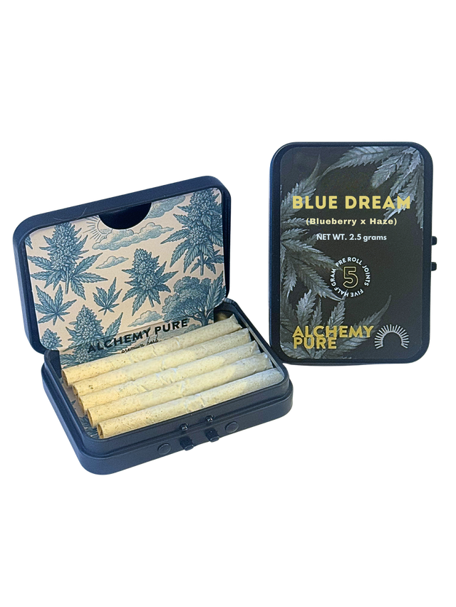Alchemy Pure fine rolled pre rolls come from cannabis in its purest form, nature-grown in New York’s Hudson Valley. Our mission is to leverage our organic farming experience and deep connection to the land to bring beautiful, pure, nature-grown cannabis, pre rolls, and more to the New York market. Now at a more accessible price, with a freshness bag inside the tin! Sativa Dominant hybrid: herbal, sweet, gassy aroma and a flavor profile of cloves, orange, hops. Bred from Landrace Thai and Mexican Sativas crossed with Afghani Indicas. Top Terpenes: Terpinolene, Trans-Caryphyllene, Farnesene, S (-) Limonene. The effects are euphoric, energetic, creative. 5 x .5g pre-rolls.